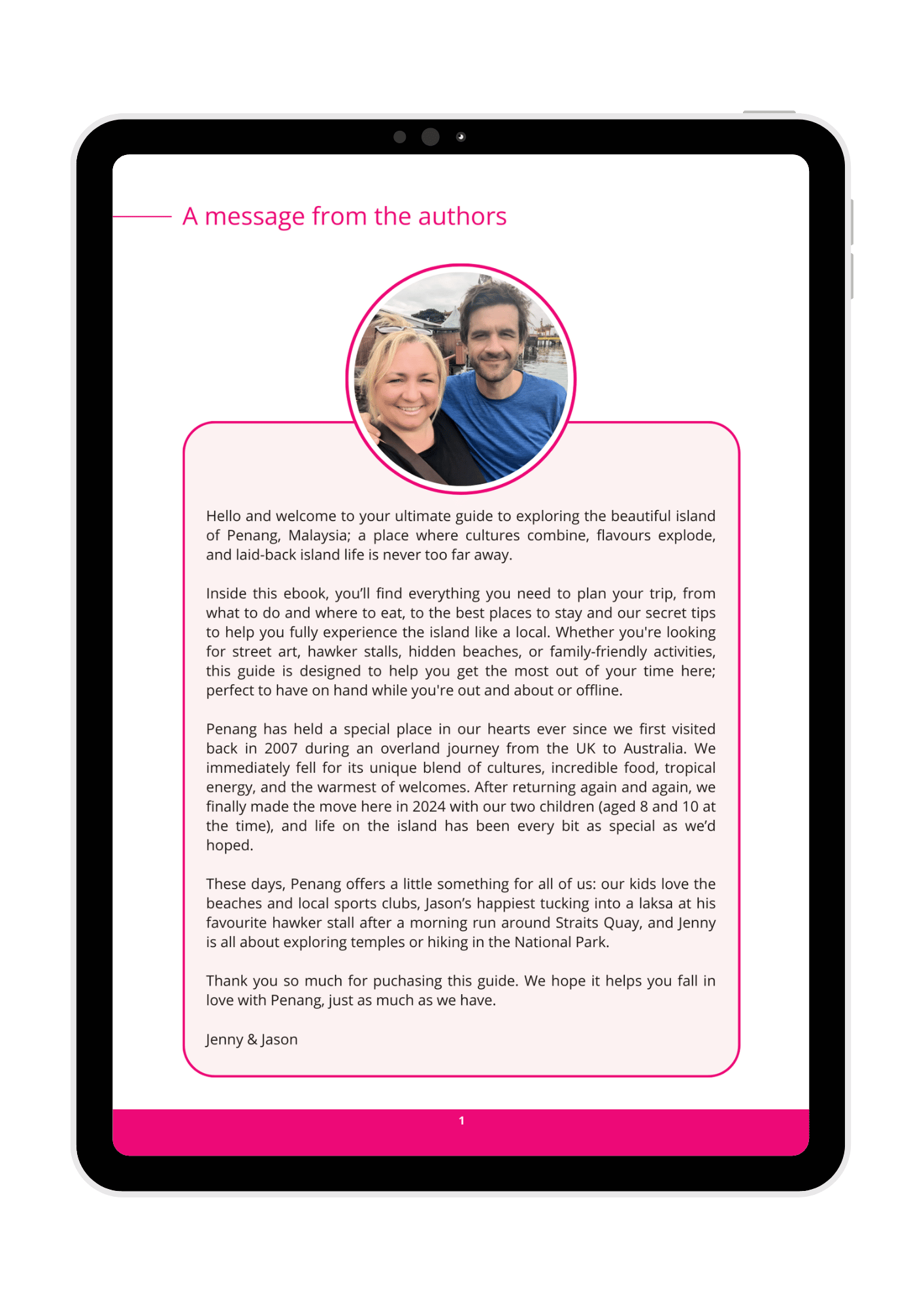 This ebook is a downloadable PDF which will be available to you offline and advert-free for your travels. You will not be receiving a paper copy. Save it to a device to read on the plane to Malaysia, download to your phone to follow the self-guided walking tour around George Town, or print it off at home before you leave on your adventures and highlight all the bits you want to remember for your visit.