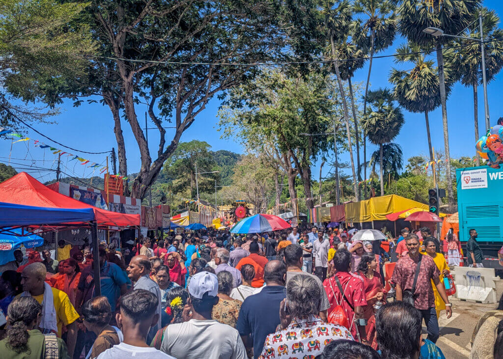 Roads close and crowds gather early. Planning for Thaipusam begins months in advance, with large numbers of volunteers ensuring crowd management and the safety of devotees.